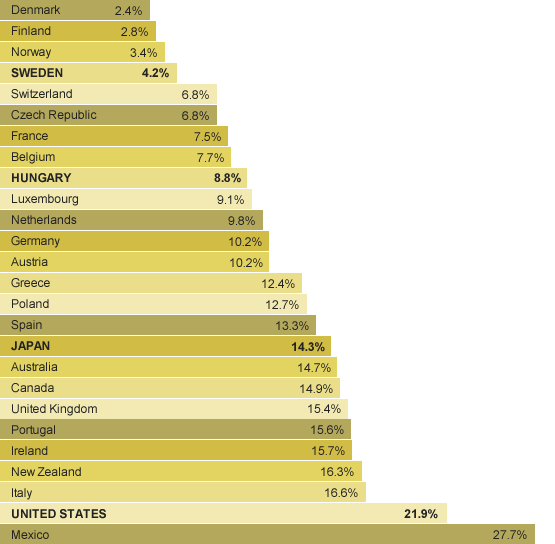 NOTICE how U.S. child poverty is so much worse than the other "developed" countries.